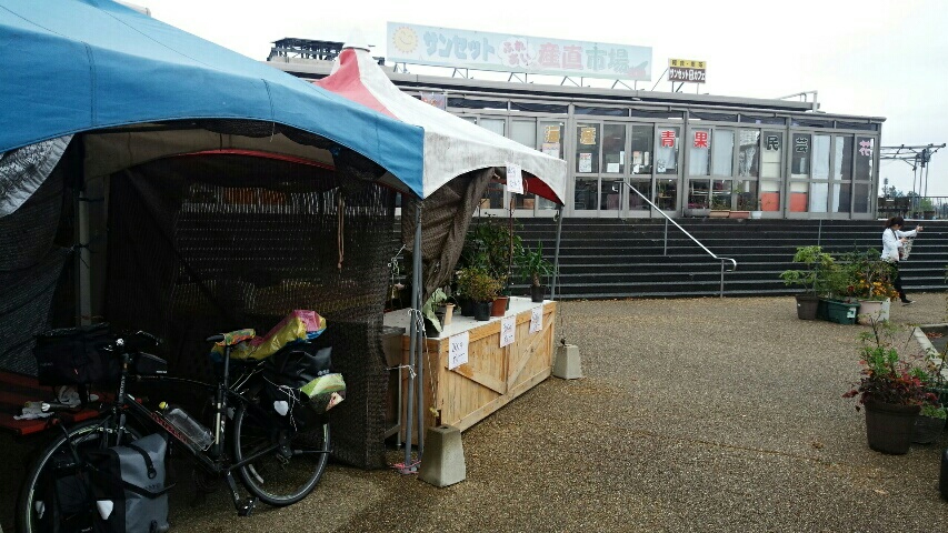 11時 ぬ、雨降ってきた。予定より早い!スーパーに逃げ込んで雨宿りしながら昼食休憩。