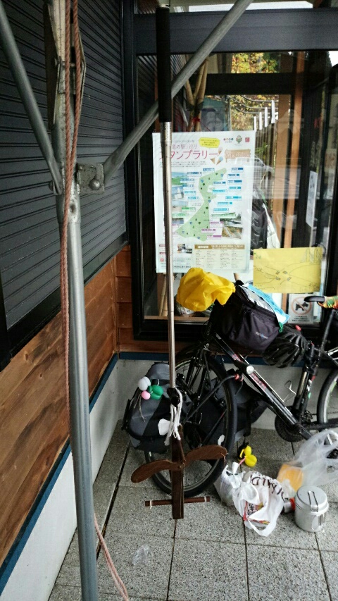 11月15日 能登 ランプの宿 南下編(中部) 2015年11月16日 天気 雨のち晴れ5時 起床。アラームは4時にしたのに起きれず。だめじゃん。そして雨降ってる。6時 まだ雨降ってる。出発のリミットは9時に設定。止まなければ出発です。ジッとしても仕方ないので、写真と動画を撮りましょう。ペルチエの魅力的な立ち方をちょいと検討。ブラウンよ、お前も動画撮るか?9時 ああ、もう時間だっ。雨も止んだ。あとちょっと、、、あとちょっと、、、もうちょっとペルチエの立ち方考えたかった、、、ちゃんと日頃から練習しろってことですね(・_・;)では出発。しかし雨は降ったり止んだり。というか主に降っている。雨の日は走らないとはなんだったのか。ただし気温は16度。最近気温がどんどん上がっております。今日中に能登半島の先まで行くので、必死でこぎます。午後から雨は止む予定だったのですが、一向に止む気配はなし。むしろどんどん強くなります。干した荷物はぐしょぐしょ、服はびしょぬれ(T^T)13時 はい、リセットボタン、ぽち。休憩を兼ねて、コインランドリーに入り、衣類を乾かします。12分で100円ですって。情報修正。今日は雨、ということで、レインウェアを着ます。15時 わー、きれいな虹。と思って近づいていくともの凄い雨が降ってきた。なんで太陽出てるのに雨降るのさ。残念、写真に写らず。16時30分 能登半島の先端、ランプの宿に到着。よっしゃ雨止んだ。写真撮りましょう。下をのぞき込みたいが、、、うぐぐ、片手ではポーズに限界ががが。コントローラーを工夫しなければいけませんね。ペルチエさんは周りの反応もブラウンと違いました。ブラウンの場合、わわ本物の犬かと思った!ペルチエの場合、な、なんすかそれ(゜o゜;)ペルチエです⭐って自己紹介できるかわいいポーズ作りたいですね(*''''▽''''*)18時 ランプの宿は夜が本番。明かりがきれいです。さすがに一眼レフでないと撮れない。データ移動が面倒ですね。さあ、移動開始。19時 道の駅 狼煙(のろし)に到着。この辺りは異様に明かりが少ない。寝るには好都合です。20時30分 遊びたかったが、、、疲労がたまっていた、それに何だが寒い。今日は寝ましょう。11月14日 能登島 朝風呂と雨11月15日 能登 ランプの宿11月16日 能登の千枚田→操り人形と自転車日本一周 記事まとめ PR