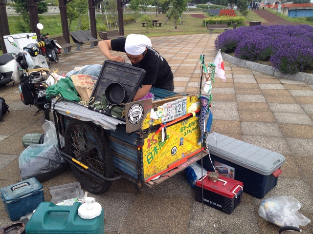 7月18日 中富良野で花火大会! 南下編(北海道) 2015年07月19日 天気曇のち雨 気分95たかぶってます4時 起床5時 リヤカーマンが飯ごうしてくれる(O_O)おかずはナスの漬物とメロンの刺身北海道では漬物用のメロンが普通に存在します。間引いた小さくて甘くないメロンとか、漬物用のメロンがあったはず。これは前者。醤油でたべます。朝からごはんを2合くらい頂いてしまいました。9時 今日は中富良野で花火があるらしいので、中富良野にとどまる事に決定。18時に昨日の仲間と合流じゃ。留まるならばと、散策に出かけます。11時 コンビニで日記書いた日記を更新したら、何故か反映されずにあせる。まさか書きなおし、、、!?13時 泊まった公園に戻り、ブラウンの練習、練習、練習15時 疲れた!寝る!マット引いてベンチで寝る。もう一度日記を確認。あ、更新されてる。安心。でも20時から雨の予報!(O_O)嫌な予感。17時 おー、そろそろ待ち合わせ時間。目印の仲間のバイクが見つからん!どこだー!結局電話で待ち合わせ、そして現地集合になる。おーおー、まだ2時間近くも時間があるのに場所取りで人がギッシリ(O_O)これは、、、チャンス(☆_☆)ブラウンと一緒に会場を歩き回ります。うおー、なんか知らないが老若男女問わず異様に盛り上がる!これが祭テンションかっ(≧∇≦)最高に楽しい!気が付けば1時間半くらい歩き回ってた!(O_O)隅から隅まで歩いちゃった。ひっそり焼き鳥を期待してたけどくれたりする人はいませんでした(T ^ T)期待すると失敗するの法則まー、子供連れが多いのでしょうがないとも言えるけど。皆お子さんの為にお金を使うのです(≧∇≦)相当目立ってしまったので、チラッとスタッフの顔色を確認、、、笑ってくれてて一安心(~_~;)あー良かった。19時30分 しかし予報通り雨が降ってきた!擬音で言うなら「ザーザー」。ブラウン!ハウスハウス!!(O_O)仲間から連絡がきて、これからこっちに来るらしい。しかしいぬたびは既にやり切った感が凄い(~_~;)遊び疲れたー。うおー。6人もきたー(O_O)ぁ、大間のフェリーで一緒だった人がいる。(O_O)言われるまで気づかなかったけど!!1人女性だ。現在地が詳細になると危険との事なので、投稿をちょいと遅らせまーす。ライダーのおじさんがビールと焼き鳥を皆に奢ってくれました!(O_O)わー最近やけにアルコールを飲む機会が多い気がする。雨は更に強くなり、叩きつけるような勢いに、、、!(O_O)これは中止か、、、?と思ったら、唐突に花火が上がる!おーおー。かなりの迫力!今年の初花火終了!(≧∇≦)パチパチパチパチ雨も大分小雨になりました。最後に皆で記念写真(O_O)最後にもう一度、一緒にライダーハウス泊まろうよ、言ってくれたのですが、空気を読まず、いぬたびまさかのこれを辞退(O_O)なぜ!?たった500円で泊まれる宿、しかも雨。もちろん皆が嫌いな訳でも、ケチった訳でも無いですよ!(後者は微妙な所ですが)ただ宿を使う気が無い、とただそれだけ。この旅ではいかなる時もいぬたび、我を通します。(いぬたびの旅論を話したら皆にお前は仙人かと言われてしまった(T ^ T))22時 ねぶたで会おうと皆と別れ、雨の中、トイレの軒下でシュラフ引いて1人寝ます。祭りから一転1人きり。濡れた服を着替え、真っ暗で湿っぽくて人通りを気にして、どんどん惨めな気持ちになる。それはきっとライダーハウスに泊まってる皆のことを考えてしまうから。自分と誰かを比べてしまうから。でも旅ってそれだけじゃないと思う!雨音、風の匂い、地面の温度を感じて寝ている自分はとても特別なことをしている(≧∇≦)わくわくしちゃうよ!どうすれば雨に濡れ無いか、風を避けれるかを毎日考えながら寝る場所を探し、工夫する。不便も不安も全て楽しめる旅人になりたいものです(≧∇≦)ただし危険だけは近寄らないで下さい(O_O)7月17日 美瑛の青い池7月19日 札幌目指してそれ進め→操り人形と自転車日本一周 記事まとめRIXEN&KAUL(リクセン&カウル) デイパックボックス KT811DOPPELGANGER(ドッペルギャンガー) 極小径車輪行リュック SHOEL 【背負子型で小径車も荷物も運べる】 キャリングバッグ メッシュ輪行袋付き DCB463-BK PR