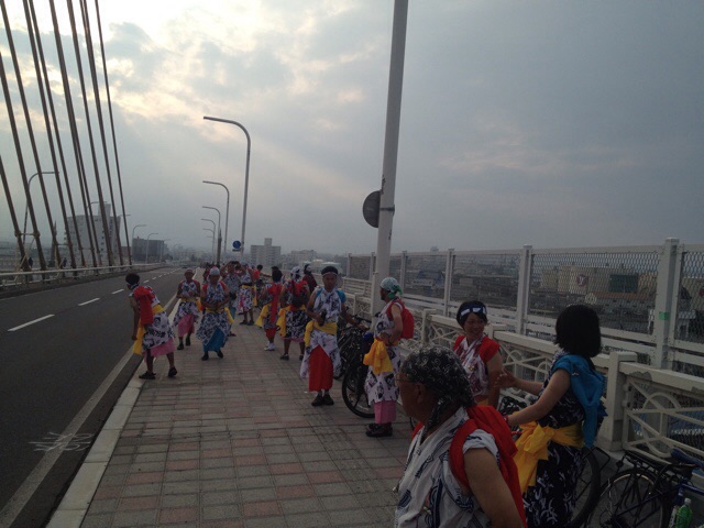 そして途中の青森ベイブリッジで待機して、自転車持ち上げてバイカーをお出迎え!