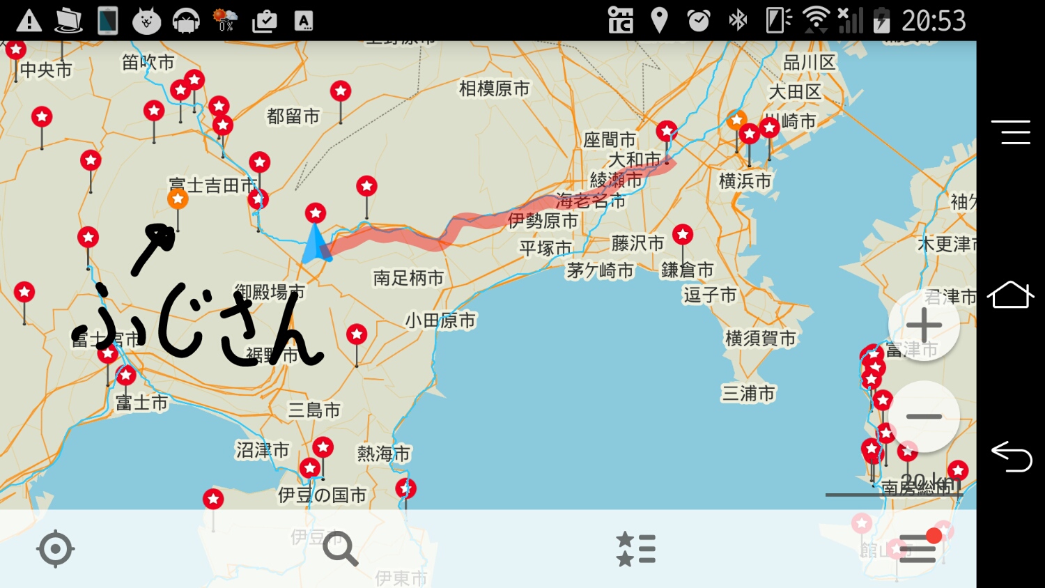 まあ、富士山の手前で北に進路を変えてしまいますけどね。