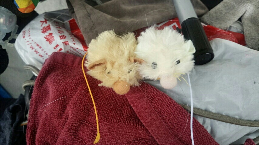 第六回 糸がついてりゃ操り人形、あとおまけ 終着地編(沖縄) 2016年01月04日 お久し振りです。いぬたびです。ペルチエさんの体が旅に耐えられない様子なので、ブラウンと引き継いでいきましょう。今日はブラウンと投げたボールキャッチする方法を色々考えてみましょう。と、なるはずだったのですが、100円均一で買ってきたボール役のチュー君に愛着が沸いてきて、頭の中で勝手にチョコマカ動き出してしまいました。そういうわけで今回はこの子を動かしてみましょう。えーと、想像しましょう。ネズ君がチョコマカ餌を探していると、ブラウンに見つかって追いかけっこになるのですよ。食べられちゃったら可哀想なのできっと最後は上手いこと出しぬけるのでしょう。丁度トムとジェリーみたいに。と言うわけで、鼻をひくひく、落ち着き無くせわしない動きを目指しましょう。まずそのまま糸をつけても動かないので、七匹の子ヤギのオオカミのように、ズバァーっとお腹を切って重りをいれます。重りは10gくらいが丁度いいかな?糸は、鼻とお尻の2本。ネズミが尻尾で感情表現してるの見たことないので、尻尾糸はいらないかな?コントローラーは、ペンでいいか。前後のキャップに糸を挟めば容易に糸を調節できる便利道具。完成です。ふむ、初めから割と上手くいってしまった。改良点がないとつまらないぞ?~~~~~もう一匹いるので、この子は指人形、アクションアニマルにしてみましょうか。もっと古いとハンカチネズミですね。ちょっと小さいけど。また、お腹を切ります。今度は親指がぴったりはまるくらい。これだけで完成。ちょっと小さい気もしますが、かわいいじゃないか。1月 3日 やる気でないのさ1月 4日 離島準備と、、、?1月 5日 いざ石垣島へ、そして自然の手荒な歓迎→操り人形と自転車日本一周 記事まとめ PR