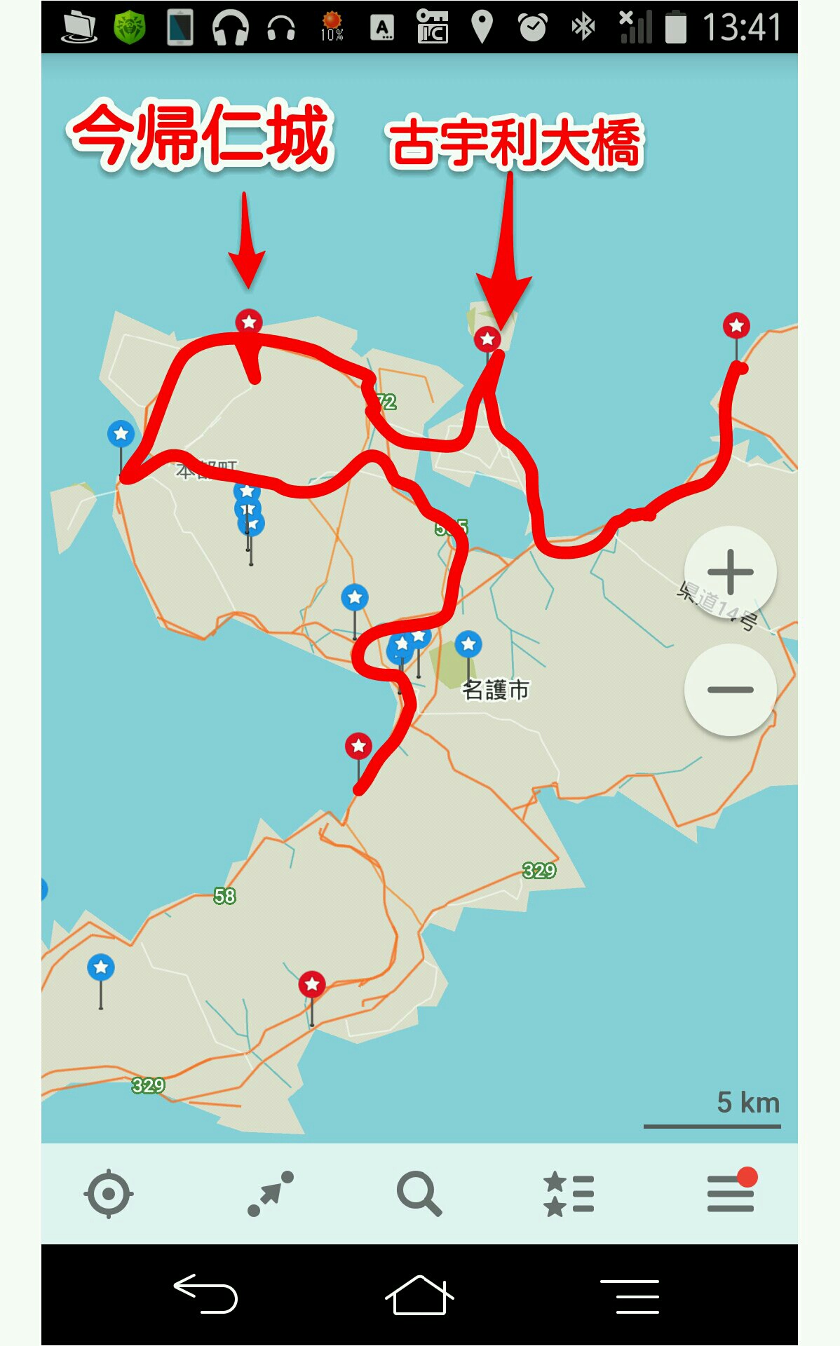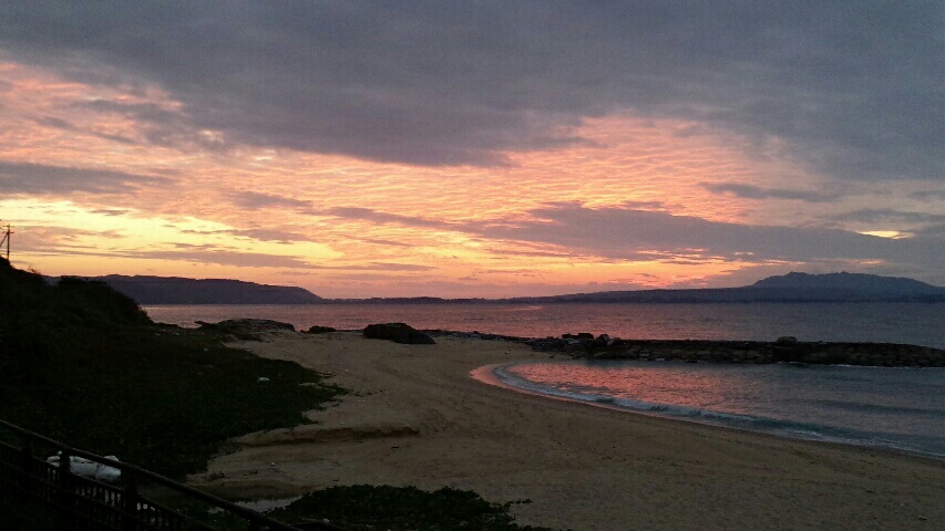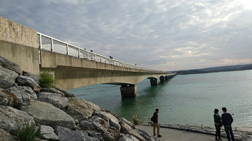 12月30日 今帰仁城の全力観光 終着地編(沖縄) 2016年01月01日 天気 曇り時々雨6時 起床。2時間した寝てない。けどやけにテンションが高い。↓コレのせいいつの間にか充電用のコンセントを無くしてしまったので100均が開くまで朝マック。9時30分 無事コンセント購入。200円だったけど。猛烈に気持ちが揺れる。本部を回るの面倒だな、タイヤ減ってるし早く北へ行きたいな、でも今帰仁城跡がある、しっかり外周回りたい、、、でもなんか面倒だなー、、、でもやっぱり今帰仁城にいく!という思考が現れた軌跡。本部に大きなスーパーがあったので年越し沖縄そばを購入。なぜか沖縄のソバは400gが最小単位。なぜそんなに大ボリュームなのさー。ついでに言うとパンが110~130円くらいで高くて買えない( ̄△ ̄)本州なら80円くらいで買えるのにさー。しかしこのイオンのスーパー、ゴミ箱を設置しないから海沿いが大変なことになっている。うーむ、、、、ひどい。12時 今帰仁城に到着。しかしぽつぽつ雨が降ってくる。え!嘘!?雨なんて降るわけ、、、ありました。超ピンポイント雨雲襲来。13時 雨が上がるのを待って出撃!久しぶりにブラウンと一緒にお散歩観光を開始。観光客も多いのでそっちともふれあいましょーつはぶきの花がたくさん咲いています。南の自然は北海道とはまた違う美しさ。15時30分 本気で遊びすぎた。若干燃え尽き書けている。が、今日はまだ終わらない。16時30分 古宇利大橋に到着。なるほど、でかいだけでなく美しい橋だ。橋を1往復して、さあ北へ向かいます。うおおお、なんて見事な夕日(゜o゜;)赤色が普段と明らかに違うぞ。これが今年最後の夕日になるかもしれない。よーく見ておきましょう。18時 道の駅おおぎみに到着。漢字で書くと(大宜見)です。身体が非常に疲れている。休みたい。。。休みたい。。。。店にまだ人がいるので隅っこで自転車を陰にして仮眠。ぐーーー、、、24時 ぐわっ、雨が降り出した-!慌てて軒下に移動。ついでにキムチの元で沖縄ソバと豆腐を煮て食べます。うーん、まあまあ。さ、今度こそ寝ます。お休みなさい。12月29日 沖縄開びゃく伝説12月30日 沖縄今木仁城の全力観光12月31日 沖縄最北端の岬 辺戸岬→操り人形と自転車日本一周 記事まとめ PR
