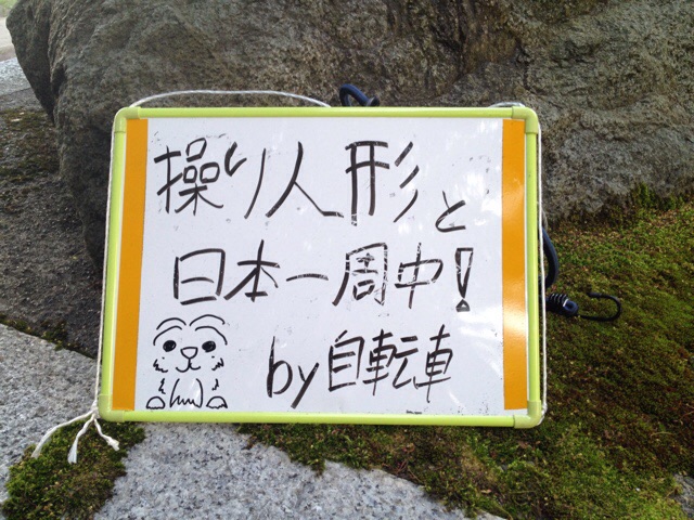 5月22日 5日目 (茨城)ブラウンひたち駅に立つ 北上編(関東) 2015年05月23日 天気晴れ 気分855時30分 変な夢で起床。やたら顔のでかいおばさんが、いぬたびに延々と誰だか知らない別の女性の悪口を聞かせてくる(村八分にされてる?)、そんな夢でした。わけわからん。そして朝はテントの外に張り付いた毛虫ちゃんを弾き飛ばす作業から開始。4cm程の毛虫が5匹も張り付いてた。7時 朝はジャージを着てても肌寒い。テントも結露が凄い。すぐには乾かなそうなので濡れたままたたむ。8時 出発ー。茨城県の大洗を越え、海岸線のひたちなか市へ向かう。9時 水戸の看板が見える。無性に水戸に行きたくなったので進路変更。水戸を経由して、偕楽園へ向かうことにする。9時30分 おじいさんチャリダーに遭遇。お喋りしながら偕楽園までの2km程を案内してくれた。ありがとー。10時 偕楽園から出るときにジーちゃんバーちゃんの集団に捕まる。左右からいっぺんに話しかけないでぇー。10時30分 さあさあ日立市へむけて漕ぎだします。12時 気温24度、お腹も空いた。明らかに集中力が下がるのを感じる。早く昼食を食べたいが、いい(安い)店が無い。13時30分 日立市へ入っていくらか経った頃、ステーキガストを発見。ここで夕食分も食べるつもりで食べ放題を決行。14時 これが大大失敗、満腹になると張っていた緊張が緩んでテンションが一気にダウン↓。しかも食べ過ぎで気持ち悪い。激しい後悔の中で日記をかいてます。続きはまた夜書きます。16時30分 ひたち駅に到着。食べ過ぎでいまだ気持ち悪い。今日は走るのを止めにする。17時 ベンチで昼寝。寝ながら考える。走らないのならブラウンと駅で路上パフォーマンスするぞ、と。 プランは18時30分まで構想と練習、19時から下見、20時00分決行。時間は30分間に限定。19時20分 下見を終え、前倒しで開始しようとするが緊張と未体験の恐怖で人形を出せない・・・うろうろしててめちゃ不審人物。19時30分 意を決してブラウンを取り出して操ってみる。演技というよりは散歩して、歩いてる人に愛想を振りまく感じ。高校生と、劇団してるお姉さんと会社員のおじさんとお兄さんとか色んな人と話をして少しカンパしてくれる人もいた。それは人形でなく旅を応援するものだったけど、大きな力が強く背中を押すのを確かに感じました。20時10分 注意される事も無く無事終了。21時30分 今ブログを書きながら静かに興奮しています。いぬたび明日も頑張ります。支出昼食754円 どか食い止めましょう→5月21日 茨城の人は優しいね→5月23日 茨城で事故った!!!→北上編(関東)へ→北上編(東北)へ→操り人形と自転車日本一周 記事まとめへ(モンベル)mont-bell スーパーストレッチサイクルレイン パンツ 1130272 GM ガンメタル L新品価格¥11,108から(2015/6/9 02:35時点)モンベル(mont‐bell) スーパーストレッチサイクルレインジャケット男性用 1130271 フラッシュグリーン FGN XL PR