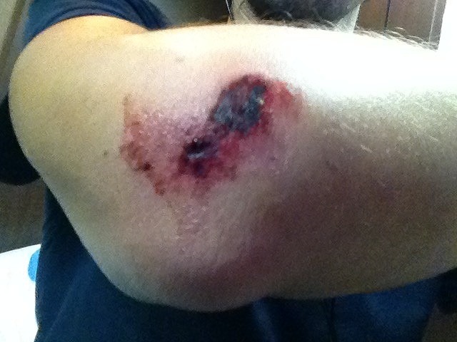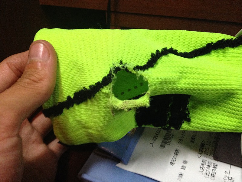 5月23日 6日目 茨城県で事故った! 北上編(関東) 2015年05月23日 天気晴れ 気分50そらテンションも低くなりますわ0時 また夢で目が覚める。学校の机の窓際みたいなところで居眠りしてたら窓の外から「いらないのはぁー?」って声が聞こえて来て、窓の外に着物を着た人(お婆さんだったかな?)が釘を構えて木槌を振り上げている! 「いらないのはその耳かー!」 はっとして目が覚めたらまだ0時。久しぶりにゾクっとしました。念のため辺りを確認しようと思ったが、テントの外は怖くて見れませんでした。あと暴走族みたいなバイクの音がしばしば聞こえてうるさかった。4時30分 起床。夢のせいか、眠れないので起きる。相変わらず朝は肌寒い。昨日書き忘れたが、とうとう看板に「操り人形と」の文字を追加した。 写真を撮り、動画を撮影し、路上でブラウンと遊ぶという3つの目標を達成し、人形と行く自転車旅行のスタートラインに立てたのでついに書いてみたのだ。それまでは嘘になるようでどうしても書けなかったのです(=_=;)6時 出発。昨日ブラウンが遊んだ場所がもう一度見たくなり、日立駅まで1.5km程引き返す。(自転車のある場所で遊んでました) 6時30分 茨城県の日立市を出て国道6号線をいわき市へ向けて走る。7時 事故った。見通しのいい道で直進してたら余所見してた右折車に横から追突される。うへぇー 幸い右ひじを擦りむいた程度で済んだ(相手も10km/hだったし)。警察呼んで、現場検証とか調書とか取ってもらう。巨大な荷物がクッションになって体を挟まなくて良かった。 ただ、メガネが粉砕され片方の後ろのバッグの止め具が千切れてしまう。しかし自転車はほぼ無傷(たぶん荷物のおかげだねー) 来週月曜日に相手の保険会社とお話しなくてはー。面倒だなー。10時 病院いってとりあえず異常なしとのこと。今日は茨城県高萩市で完全休養を取ることに決め、漫画喫茶に宿を決める(もし後から怪我が見つかった場合、人身事故扱いになり、またここに戻ってこなくてはんらないから)10時~20時 大して痛いトコもないけどゴロゴロゴロゴロ。負担を減らし、身体の異変を探してみるが、やはり異常は見られず。傷はこんな↓ 餞別で貰ったサポーターに穴あけちゃった(;_;)ぐすん 20時30分 漫画喫茶でブログ書いてます。6日間の写真のバックアップを取ったりブログを整理したり結構忙しい。現在予備めがねを使用しているが、とにかく一刻も早く新しいめがねを作り直さなければならない。検索検索ー♪あと新しいパニアバッグ(後部の横バッグ)も様子を見て買いなさねば。サイズ指定して作ってもらったバッグだったのになぁー。今日は寝るだけなのでここまでー。明日は早起きして自転車点検しよーっと。→5月22日 ブラウン ひたち駅に立つ→5月24日 新しい眼鏡を入手せよ→北上編(関東)へ→北上編(東北)へ→操り人形と自転車日本一周 記事まとめへGOALZERO(ゴールゼロ) ガイド10プラスリチャージングキット 1893108(モンベル)mont-bell スーパーストレッチサイクルレイン パンツ 1130272 GM ガンメタル L新品価格¥11,108から(2015/6/9 02:35時点) PR