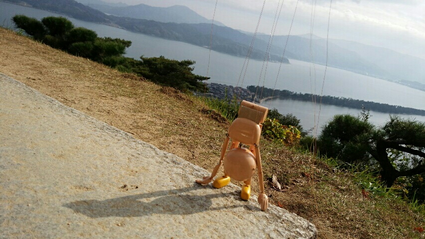 11月23日 てんきょーりつ 南下編(中国地方) 2015年11月24日 天気 曇り時々晴れ 今日も結局走りまくってしまった。3時 とてつもない凶悪な悪夢により目が覚める(・_・;)自転車、操り人形、荷物など持ち物のありとあらゆる物に致命的な打撃を受けた夢で、何故かタクシーに乗ったところで、「家までどんだけ距離あると思ってんだ(° °;)」と、慌てた所で目が覚めた。あー怖かった。とりあえず昨日のチゲ鍋の残りを温め直してもぐもぐ。6時 夫婦の話では今日の午後から雨らしい。なるほど。おっちゃんとお話、いぬたび「今日はテンキョーリツに行くんです!」おっちゃん「(ぽかーん)」いかん、何か間違えたらしい(@_@)後でいぬたび気づきましたよ。天橋立(あまのはしだて)だよっ!!(@_@)恥ずかしすぎる。12時 そんな訳で天橋立に来ましたよ。ほー、笠松公園からの景色が良いのですね。えー、、、ゴンドラが650円。(・_・;)やだやだーいぬたび歩く道を探します。で、あった(*''▽''*)ちゃんと書いといてよー。ずるいぞーうひょー。良い眺め。有名な股覗き。普通に立った方がサマになるんじゃない?14時 だいぶゆっくりしちゃいました。そろそろ行きましょう。国道312を西へ進み、17時 道の駅くみはまSANKAIKANに到着。丁度お店がしまる所ですね。19時 今日もカレーでーす。ただしチキンカツカレーです。わお豪華(*''▽''*)二個入りだったけど、待てずに一個たべちゃった。寝るには早いしペルチエの練習。天橋立でちょっと動かしたけど、あまり見てる人の心は動いていない。ペルチエの魅力的な動きがピンときません。小さな動きにこだわりすぎかな?立つこと、歩くこと、決めポーズ。この三つについてサマになるように頑張るべきかな?24時 Wi-Fiあるからって、夜更かししすぎた。そろそろ寝ましょう。11月22日 白髭神社と、はしるはしる11月23日 てんきょーりつ(天橋立=あまのはしだて)11月24日 鳥取県での良き出会い→人間と操り人形のコミュニケーション→操り人形と自転車日本一周 記事まとめ PR