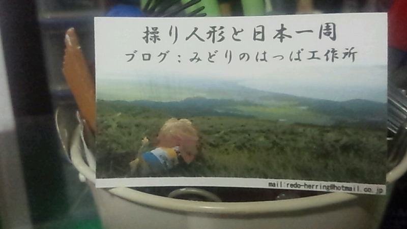 10月29日 神奈川 名刺をつくるのさ 南下編(関東〜中部) 2015年10月29日 天気曇り こんにちは。いぬたびです。11月1日からまた旅に出ようかと思います。そろそろ日記を再開しましょう。まずは北海道を回るあいだに名刺がなくなってしまったので新しく印刷します。せっかく自分で作るのだから名刺だって遊ぶべきですよね。すでに旅は始まっているのです。北海道で使っていた時の名刺の最大の特徴は両面印刷でスマートだった事なのですが、それを踏まえた新バージョンの名刺1号 変更点はQRコードや出発日を削除して片面印刷に変更してみました。理由としては、一番大事な事は「ブログ名だから」です。ブログ名で検索してもらうので、「みどりのはっぱ工作所」は表に印刷すべきと判断。名前はあまり大事ではないのですが、真ん中にないと名刺らしいスマートさが無くなってしまうので据え置き。そう、ブラウンと旅をしていると大体の人からは「操り人形の人」か「犬の人」と呼ばれるので正しい名前は覚えてもらえません。親しくなってからじっくり名前は覚えてもらえるよう努力します。また空白を多く残すことで、必要になったらTELやLINEなどの情報を手書きできるよう配慮した配置です。第二号名刺 まさかのカラー印刷。一番良く使うブラウンを前面に押し出すことでマリオネットの説明をしやすくしていきます。さらに文字情報を最小限に抑えて、渡した瞬間に必要な情報を伝えていきます。必要な情報はブログを見てください!というスタイルです。同じコンセプトで3号と4号男鹿半島の写真で「操り人形と旅してるよ!」感をだしてみたり、 白神山地のブラウン。ブラウンの全身がわかり易い一枚を使用してみる。 ただ、枠いっぱいに写真を使ってしまうと、はみ出したり空白ができたりで、きれいに作るのがめんどくさいですね。やっぱり一枚目が一番お気に入りかなー?あー楽しんだ楽しんだ。9月16日 一気に家へ一時帰宅(事故の後処理の為)10月29日 名刺を作るのだ10月31日 明日から出発です今回の旅の経路について→操り人形と自転車日本一周 記事まとめRIXEN&KAUL(リクセン&カウル) デイパックボックス KT811新品価格¥11,840から(2018/6/21 11:53時点) PR